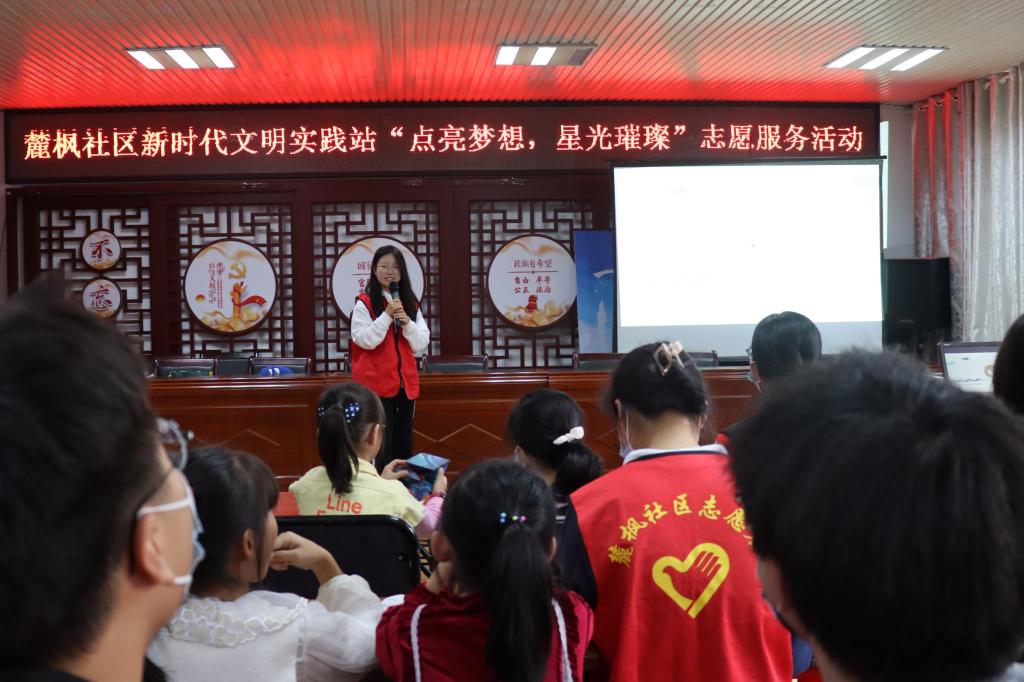 (通讯员 初子涵 夏永泽)10月22日下午,太阳集团tyc539团委区校共建部与麓枫社区联合开展“点亮梦想,星空璀璨”志愿服务活动。此次活动共有17名社区儿童、23名志愿者参与。