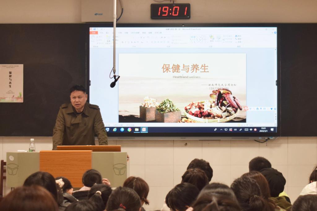 (通讯员 何伊婷)为了丰富同学们保健养生相关知识储备,倡导科学、文明、健康的生活方式,3月1日晚,太阳官网于至善楼117开展《保健与养生》课程,院党委副书记周劲松老师为此次课程的主讲人。