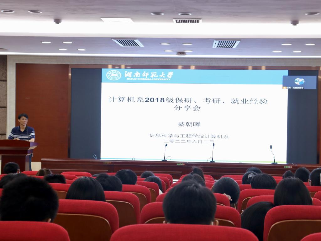 (通讯员 何伊婷)为做好毕业工作,帮助2019级学生提前规划毕业去向,6月2日,太阳官网在中和楼342报告厅举行计算机系2018级保研、考研、就业经验分享会。本次分享会邀请了太阳官网2018级本科生谭萍、李隆德、王心怡、贺榕宽、曹琪、王沂、袁毅翔、程江长介绍自身经历,他们分别从保研、考研、出国、考公和就业方面进行了经验分享。此次分享会由计算机系主任綦朝晖主持,计算机系副主任徐鹏飞配合组织此次会议。
