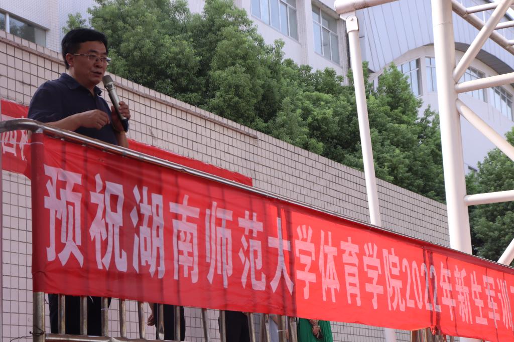 随后,我校学生工作部部长向发意发表讲话。他肯定了教官的忘我工作,赞扬了学生的优良态度和良好作风。最后,他强调新生们应不忘国耻、牢记使命,要积极投身于祖国建设和发展中去。