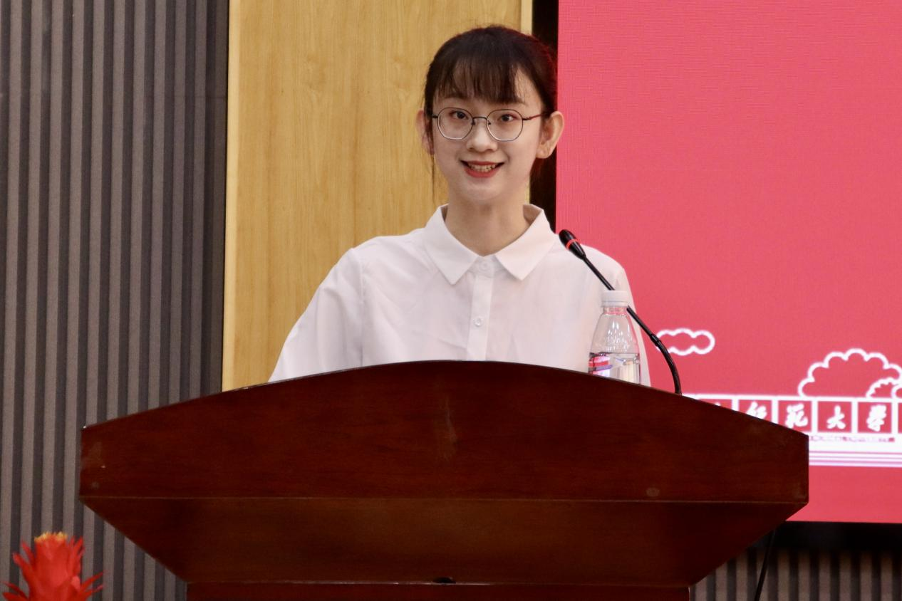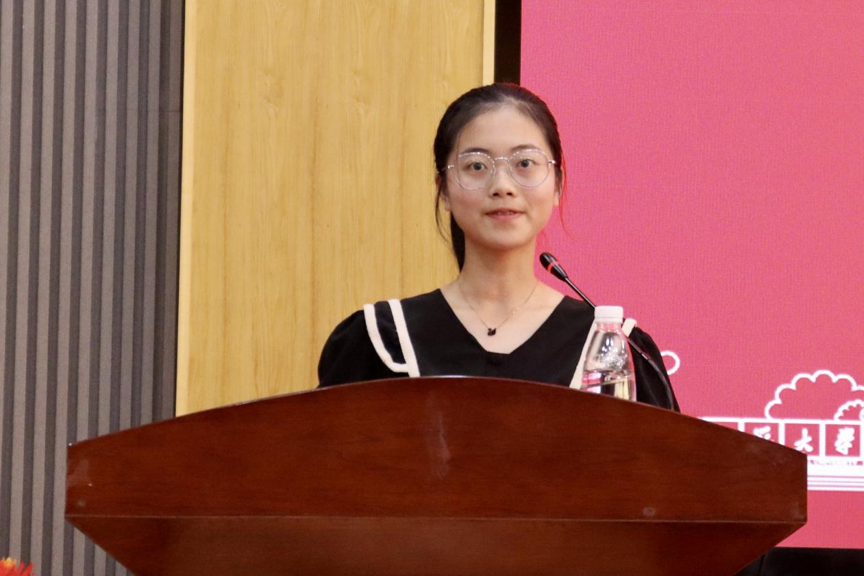 本科生代表2019级计算机科学与技术创新班许多发言,她结合自己的经历向新生们分享了经验和建议,强调“成功”、“优秀”的定义并不单一,鼓励新生勇于尝试和挑战自我。新生代表2022级通信工程专业的林颖表示会谨记老师的教诲,以饱满的学习热情发扬仁爱精勤的优良传统,展望大学四年的美好时光。