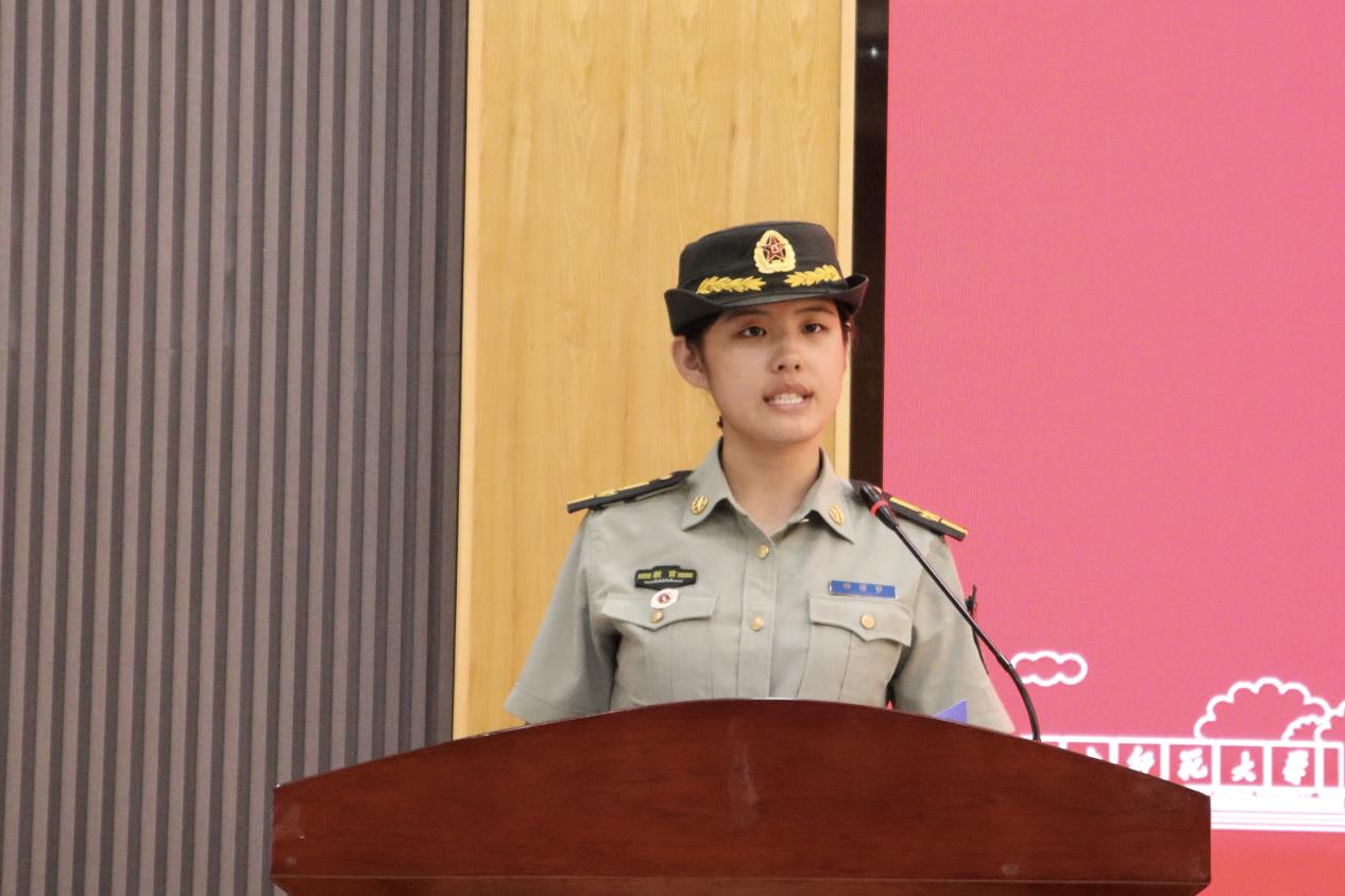 学生代表2022级人工智能专业张众就军训事宜诉说心声,他承诺会做好“吃苦、受训、坚持”三重准备,以坚韧不拔的意志出色完成各项军训任务,学习军人作风,在日后的学习生活中传承发扬军训时的优良品格。教官代表2020级计算机科学与工程专业吕汶芯代表全体教官发言,她表示全体教官会严格要求自己,展现优良作风,帮助全体新生树立纪律意识和集体意识,贯彻落实各项安全制度。