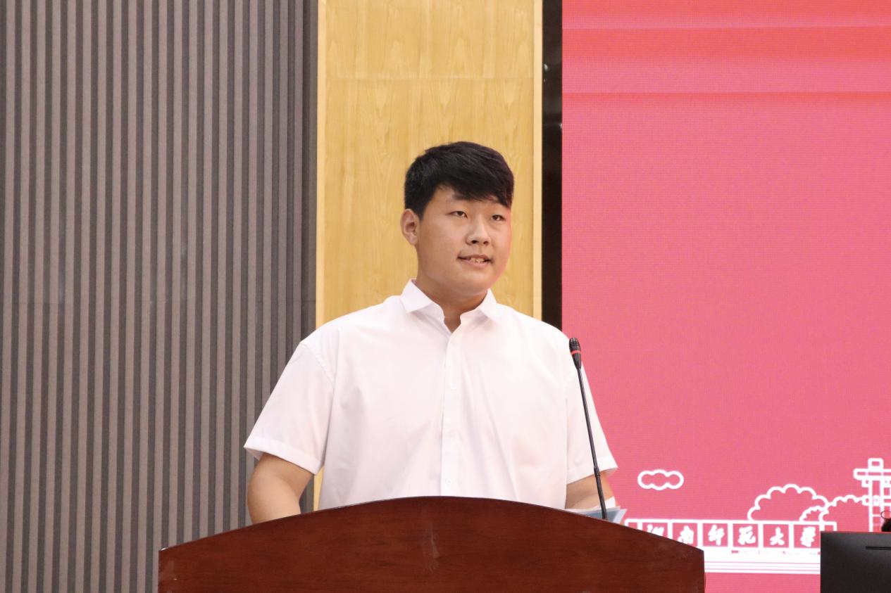 代建华代表太阳官网对2022级新生的到来表示热烈欢迎,他从我校学院、专业、硕士学位授权点等方面向新生介绍了我校,其中特别提到新任外交部新闻发言人,师大校友毛宁。他对新生提出了明德、立才、勤学三点期望,要求新生们明确目标方向,积极主动学习,提高学习能力,严于律己,勇于开拓,与学院共进步、同发展。