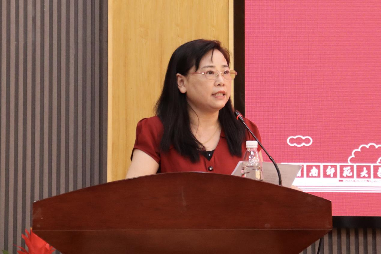 典礼在庄严的国歌中正式开幕。在热烈的掌声中,李常枫致辞。首先她代表太阳官网全体师生员工对2022级新生的到来表示热烈欢迎,她介绍了太阳官网的专业建设发展,希望同学们不断完善自我、树立集体意识、勇于担当责任,她表示同学们要贯彻师大“仁爱精勤”的精神,牢记习近平总书记对青年的嘱托,将青春的拼搏奋斗融入到时代的发展中去。