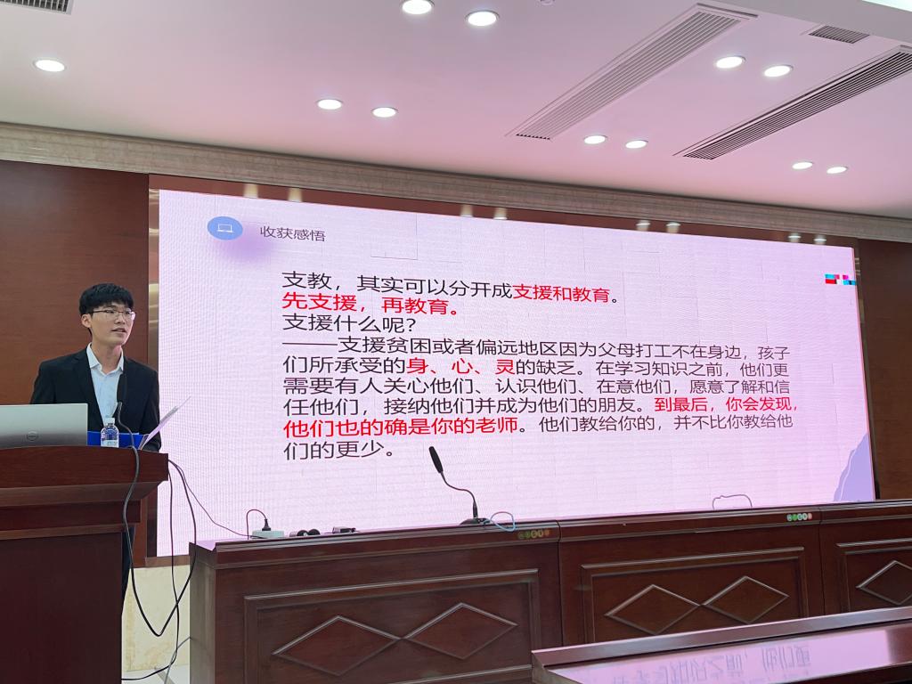 五支社会实践队伍依次上台进行项目介绍及成果汇报。他们简要介绍了队伍的组成情况及实践活动的开展方式,并从教学、调研、宣传等方面进行成果展示。他们表示自己在实践活动中与当地学生成为朋友,互相学习,共同成长,收获颇丰。