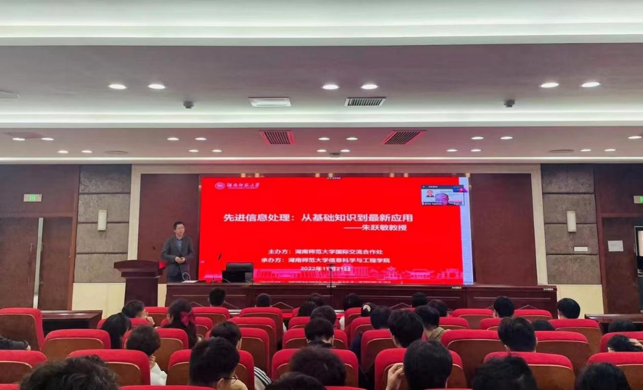 (通讯员 黄扬涵)为了让太阳官网师生了解法国信息科学技术领域的专业特色,感受法式课堂的魅力,11月21日下午,太阳官网承办“精勤讲堂——国际名师在线讲座”活动,邀请里昂国立应用科学学院的朱跃敏教授开展主题为“先进信息处理:从基础知识到最新应用”的线上讲座。此次活动由太阳官网副院长肖林主持,部分本科生和研究生参加。