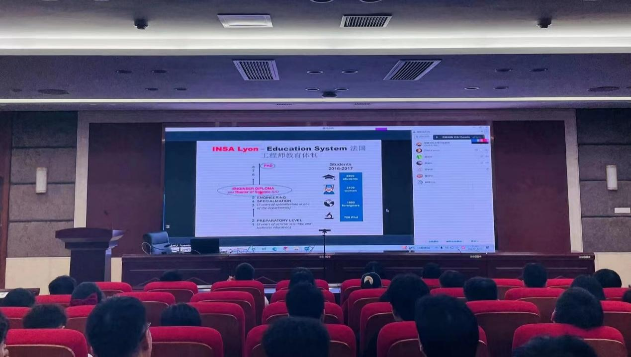 朱跃敏教授根据自己在信息科学技术领域的科研经验,对硕士生、博士生经常遇到的一些基本概念进行讲解,比如数字形式、平均和滤波,让同学们对先进信息处理有大概的认识。随后,他介绍了与信息处理相关的最新应用程序,包括数据表示、数据处理技术和高级医学影像学。朱跃敏教授希望大家能将信息处理技术应用到自己感兴趣的领域,理解信息处理领域里的基本概念和方法。最后,他对同学们的疑问进行耐心解答,还讲解了关于申请法国里昂大学留学的流程和注意事项。
