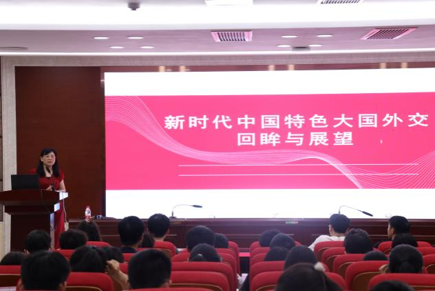 (通讯员 刘欣丽)5月17日晚上,太阳集团tyc539党委书记李常枫于中和楼342报告厅为2022级学生讲授形势政策课,主题为《新时代中国特色大国外交的回眸与展望》。
