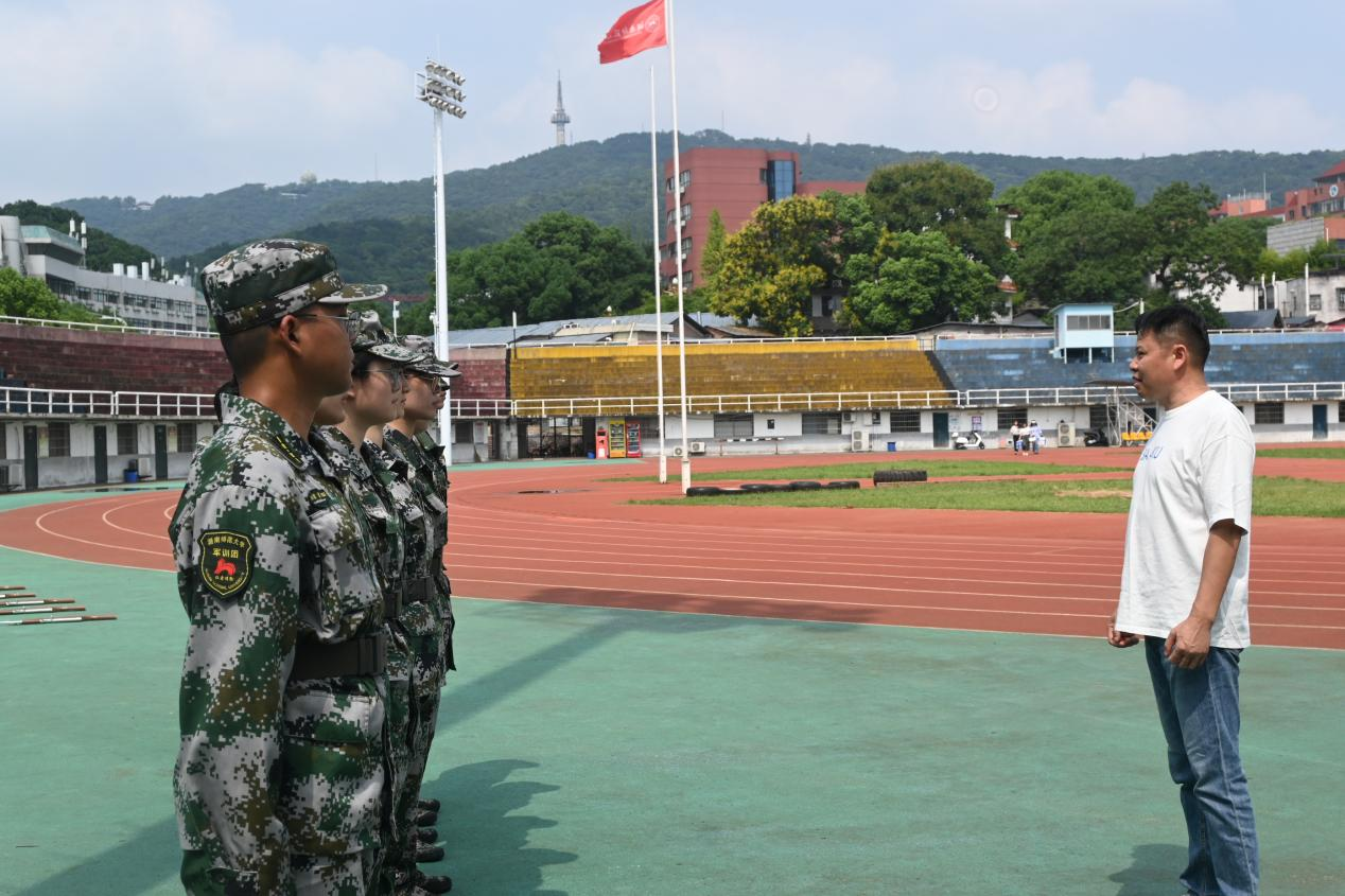 参训队员昂首阔步、身姿挺拔。在教官的指挥下,队员们迈着铿锵有力的步伐,以整齐划一的军姿和嘹亮的口号向前来慰问的领导问好。