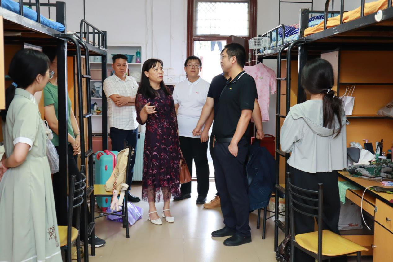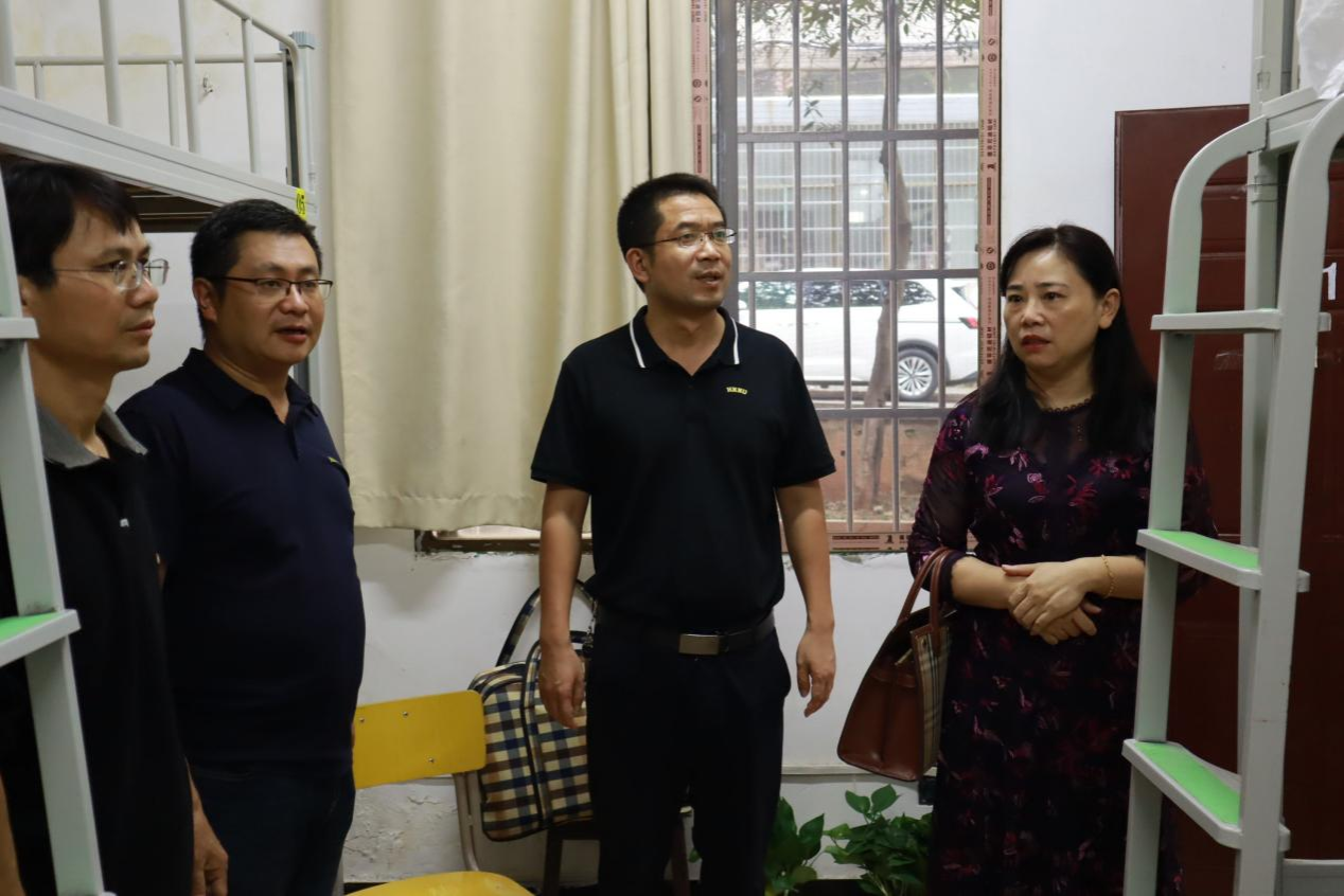 随后,代建华一行回到二里半校区逐一走访了新生宿舍,询问了大家对新环境的适应情况以及入学感受。李常枫强调宿舍里要注意用电安全、消防安全、财产安全,保持寝室卫生和通风。周劲松勉励新生要尽快适应新环境,认真做好大学四年的规划,脚踏实地,不负韶华。