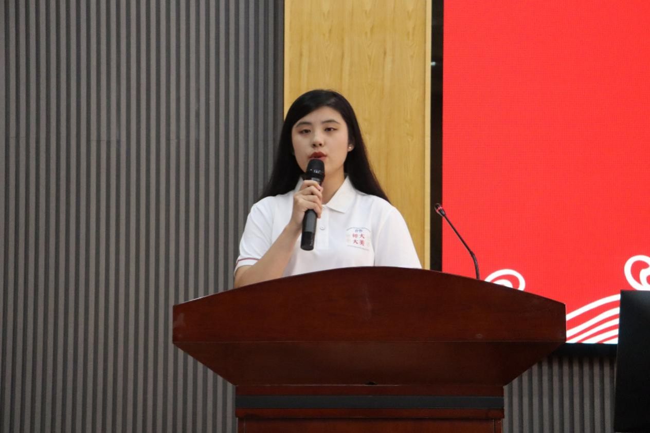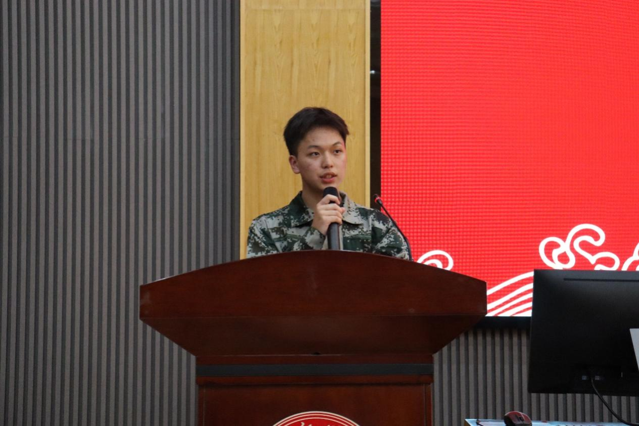 教官代表于泓鑫发言,她对新生们提出要求,希望新生们在军训期间服从命令、听从指挥、认真学习、刻苦训练、传承发扬军训精神。她表示全体教官也会履行教官的职责,以身作则,帮助新生掌握一定的技能。