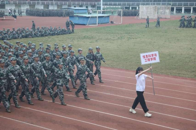 伴随着嘹亮的国歌声,军训成果汇报正式拉开了帷幕。各方阵队列整齐,行动一致,依次走过主席台接受检阅,展示了新生们良好的精神风貌和饱满的军训热情。特色方阵表演更是将现场气氛推向高潮。